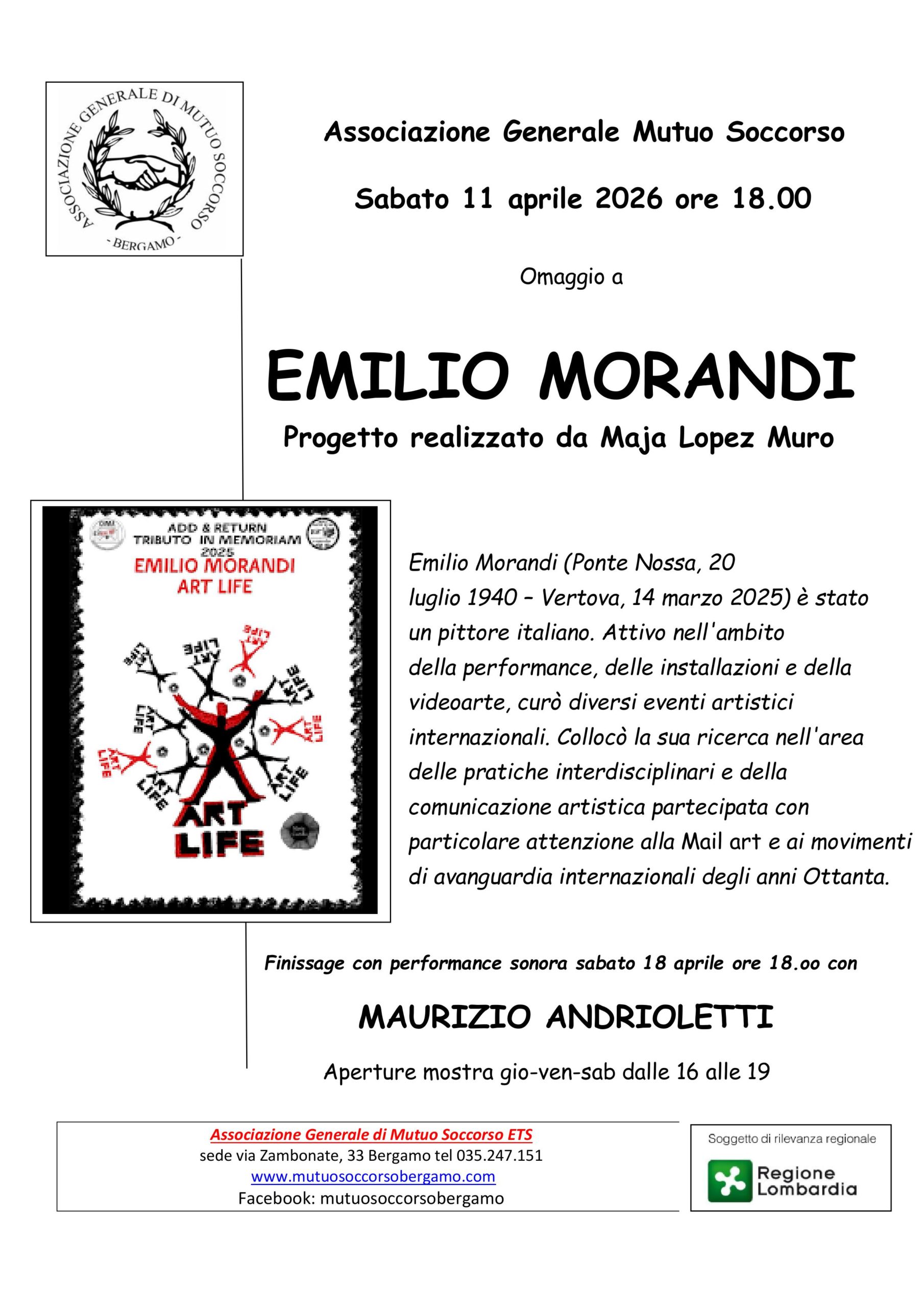 Inaugurazione sabato 11 aprile alle 18 presso l'Associazione Generale di Mutuo Soccorso ETS di Bergamo.