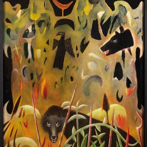 C’è carne e sangue, c’è l’istinto bestiale nella pittura di Sergio: ci sono riti tribali e simboli magici, graffi, segni, incisioni e sguardi, infiniti sguardi, ora assassini, ora docilissimi, ora rabbiosi, ora indagatori. Sguardi di animali potenti come il suo tratto pittorico, quegli animali che fanno parte del suo 6 universo pittorico: lupi, tori, bufali, bisonti, arieti. Entrare nelle opere di Battarola è come entrare in un universo parallelo che è sempre stato lì accanto a noi, che fa parte delle nostre radici, che riconosciamo come famigliare, pur non avendo più gli strumenti per gestirlo. Come i lupi, gli orsi e i cinghiali che oggi stanno tornando nei luoghi abitati scatenando infinite polemiche e dibattiti. Ascoltando la notizia del loro ritorno si resta lì divisi, tra l’incanto e il timore, tra la bellezza della loro naturale presenza e la consapevolezza dei danni che potrebbero fare. Per Battarola essi rappresentano la forza e l’istinto di una cultura primigenia che affonda le radici nell’eternità, la necessità di recuperare il ruolo di una sacralità sincera, di una sentita spiritualità. In questa sua mitologia che abbraccia mondi lontani, che vanno dal le incisioni rupestri ai versi di François Villon, alle visioni di Edgar Allan Poe, con una fantasia venata, come osservò Giovanni Testori, di qualcosa di “atrocemente sacerdotale”, Sergio conduce la sua propria lotta contro l’effimero, cercando di ritrovare ciò che davvero conta.