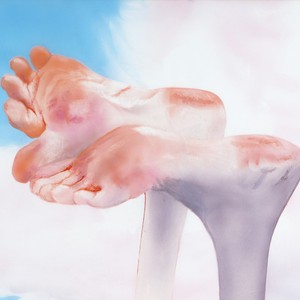 I soggetti di alcune opere dell’artista sono rappresentati fra le nuove e con le gambe alzate, in una posizione che potrebbe essere sia sessuale che infantile, rimandando ai personaggi dei cartoni animati.
