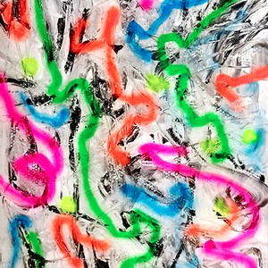 Dall’altra parte Zanet espone opere su carta montate su pannello, espressione del piacere del processo creativo, una vera e propria esaltazione della pittura stessa. La pittura nel suo caso è protagonista indiscussa e l’artista si comporta per accoglierla, darle forma dal caos, portarla all’ordine, quasi fosse uno strumento, un mezzo, innescando un moto catartico di energia che si libera e si trasferisce all’esterno.