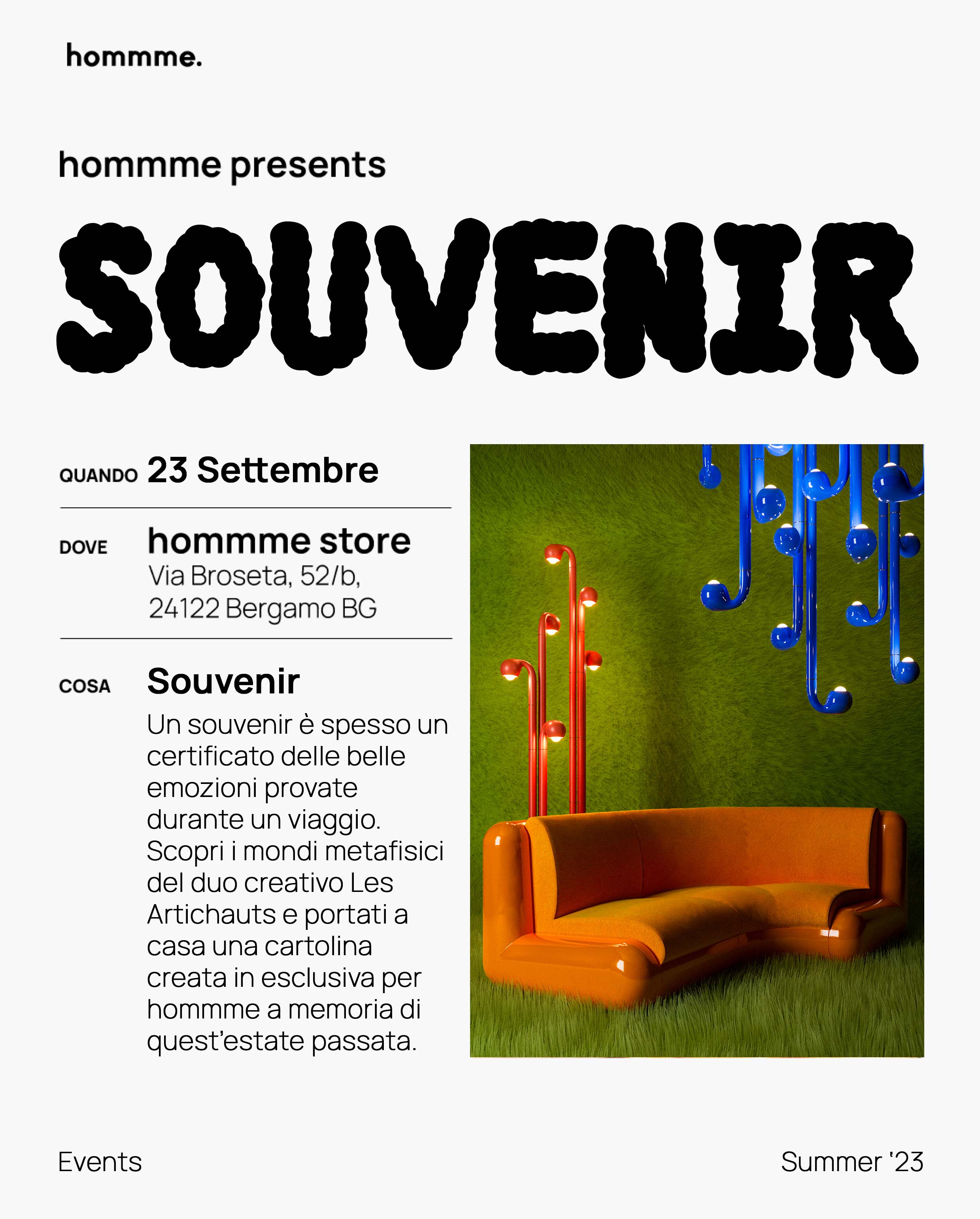 L'appuntamento è previsto per sabato 23 settembre, dalle 18 alle 22, da hommme store in via Broseta 52/B Bergamo.
