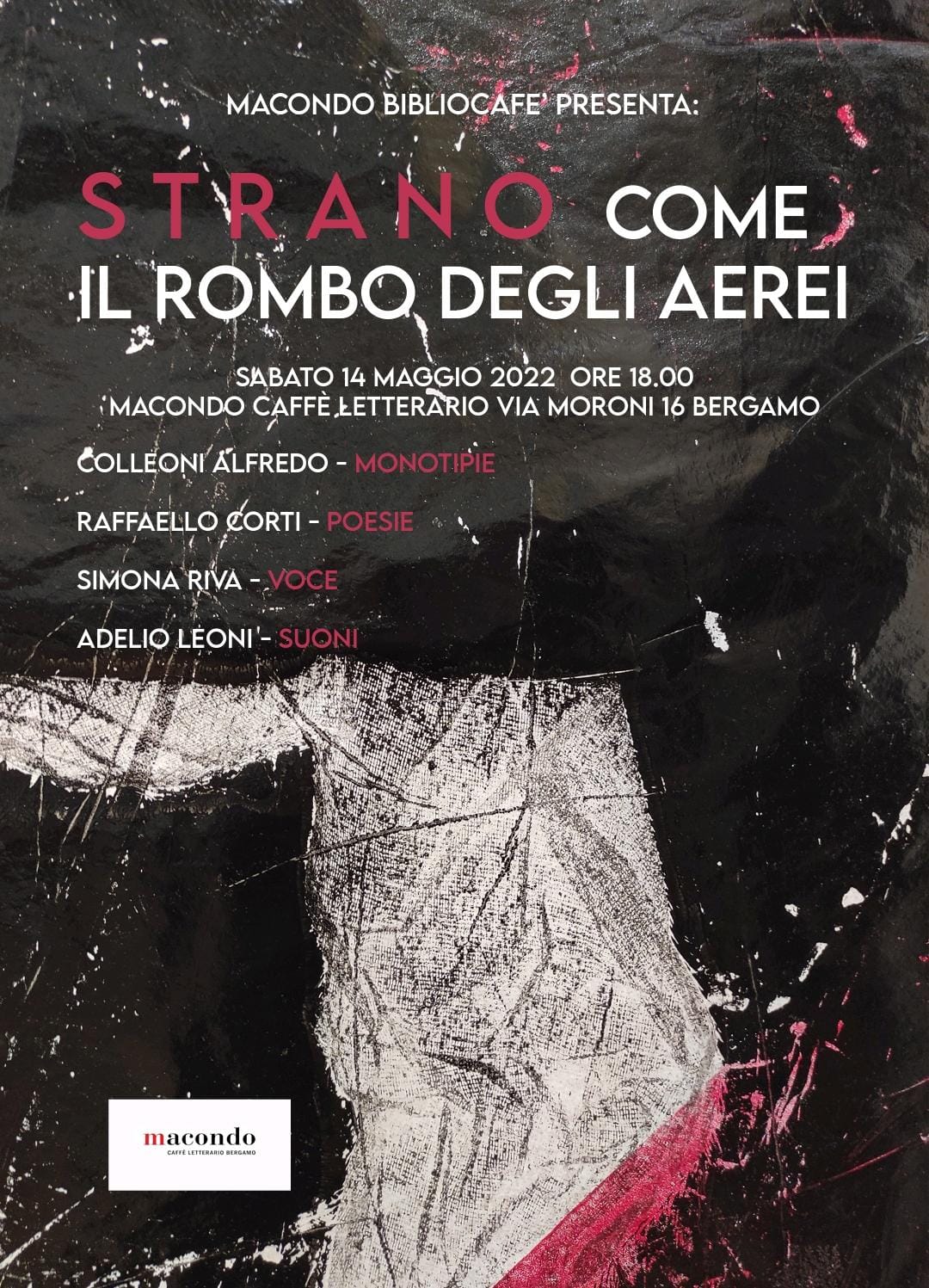 Sabato 14 maggio Macondo Biblio Café è lieto di ospitare la mostra d'arte di Alfredo Colleoni, artista bergamasco noto per la sua complessa serie di monotipi.