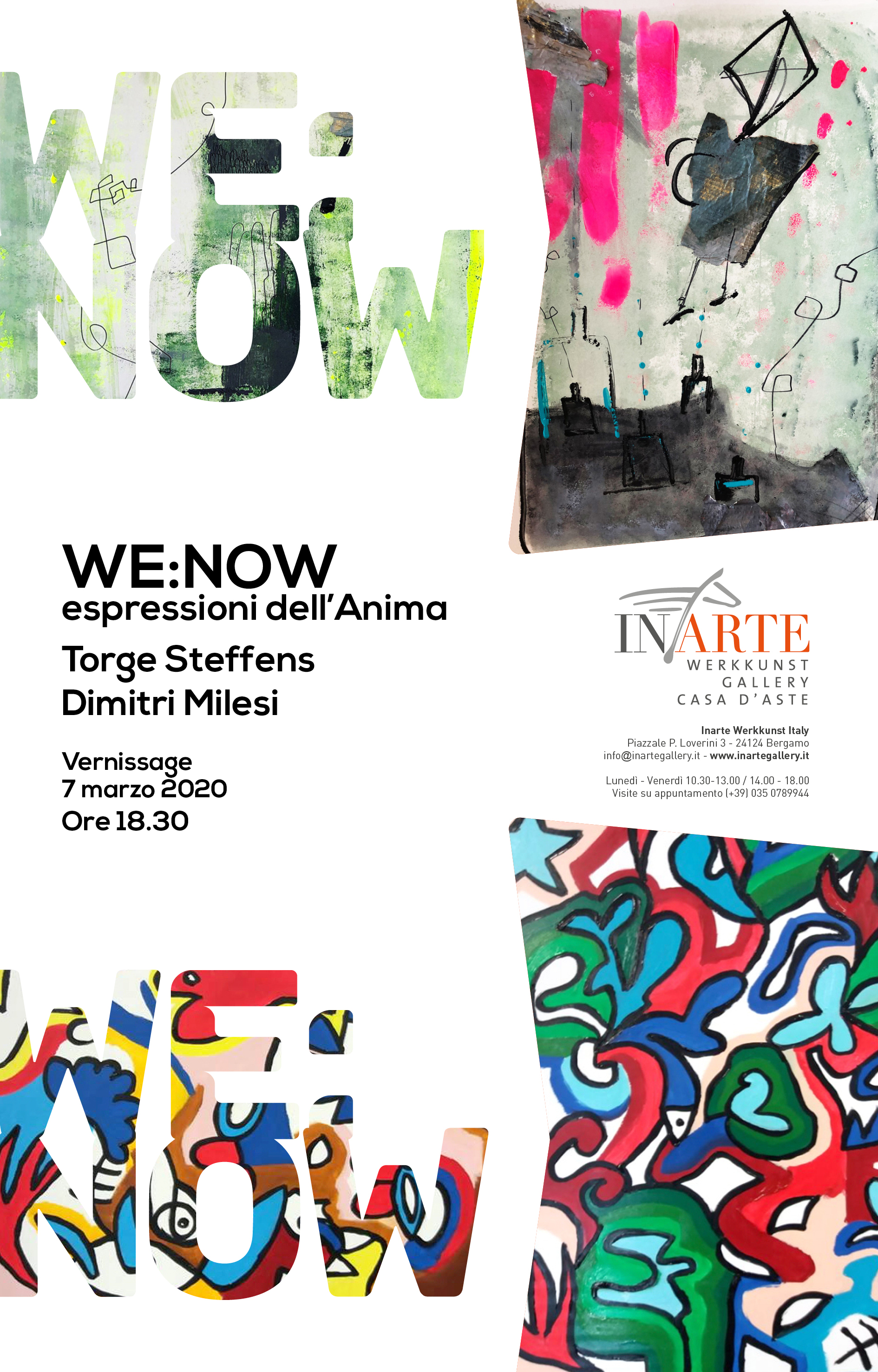 InArte Werkkunst Gallery è lieta di presentare WE: NOW I Espressioni dell’Anima, doppia mostra personale di Torge Steffens e Dimitri Milesi; entrambi gli artisti condividono l’amore per l’arte e per i colori, cimentandosi in continue sperimentazioni date dalla loro esperienza diversa vissuta.