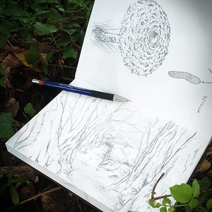 Laboratorio di disegno naturalistico all'aperto di mezza giornata per adulti e ragazzi (sopra i 12 anni), anche per chi non ha mai disegnato, tenuto presso l'ecocampeggio Placàt, nei boschi di Bossico (BG).
