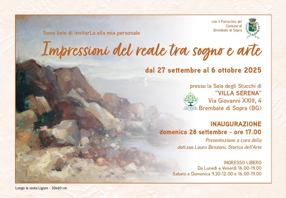 La mostra è visitabile a ingresso libero al piano terra della Villa Serena in via Giovanni XXIII n. 4 a Brembate di Sopra (Bg) da sabato 27 settembre a lunedì 6 ottobre, da lunedì a venerdì dalle 16.00 alle 19.00 e sabato e domenica dalle 9.30 alle 12.00 e dalle 16.00 alle 19.00.