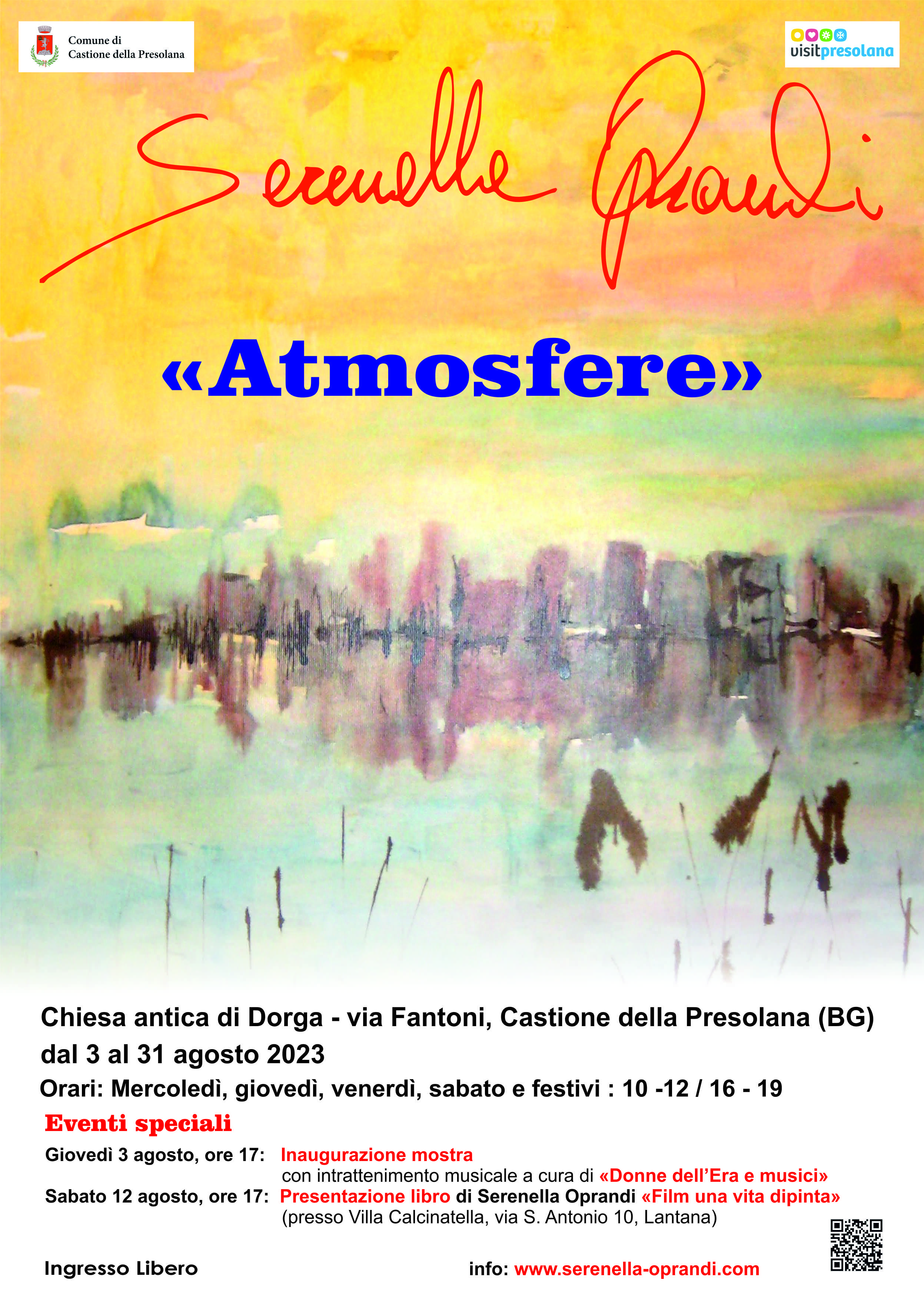 Si svolgerà a Dorga, dal 3 al 31 agosto, negli spazi della Chiesa antica in via Fantoni, la mostra personale di Serenella Oprandi “Atmosfere".