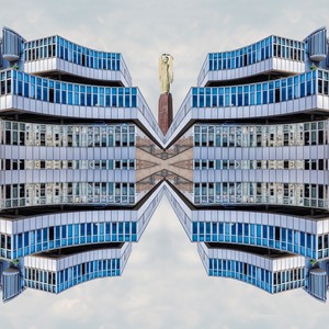 L' idea di questa serie fotografica è nata da una piccola lente caleidoscopica (Peggy Guggenheim collection), acquistata in un negozio di Venezia, un oggetto che nella sua semplicità regala modi inattesi di guardare il mondo. Vista attraverso questa piccola lente, la città si scompone e si ricompone. Le moderne architetture si fondono con gli edifici del passato, gli agglomerati urbani si trasformano in universi chiusi in se stessi, ossessivamente riprodotti, dove non è più percepibile il brulicare della vita, quasi fossero monoliti alieni. Volutamente non ho rappresentato l’uomo, che svanisce sempre nelle foto panoramiche delle odierne metropoli; città sospese dentro una rappresentazione soggetta alle leggi di prospettive astratte, che cercano di ancorarsi ad un territorio che non riescono a vedere.