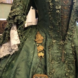 In questa e nella successiva quarta sezione, si può ammirare la collezione di Mara Bertoli di Castiglione delle Stiviere, collezionista di abiti e tessuti a partire dal ‘500. “Si tratta di costumi originali - spiega Rizzoni - e non di realizzazioni fatte nei secoli successivi. Ci sono tre abiti completi maschili e tre abiti completi femminili, ideali per comprendere l’epoca settecentesca. Ci sono anche marsine e sottomarsine con filati d’oro e d’argento e sete policrome. Ci sono anche corpetti e giacchine con lampassi pregiati, e due pezzi rari: una marsina da bambino ed un corpetto da bambina”. Non manca lo spazio per gli accessori (scarpe, calze, giarrettiere, copricapi, ecc.) e per alcuni gioielli un tempo applicati alle vesti. In esposizione anche gli ex voto provenienti dalle chiese di S.Croce e S.Giuseppe, con illustrazioni di “Grazia Ricevuta” che molto dicono dei costumi del tempo, così come l’abito della Madonna del Carmelo, con un tessuto certamente fra i più preziosi del Museo Gandinese.