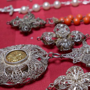 - il Tesoro diviso tra l’eccezionale copertura dell’altare maggiore della Basilica e le oreficerie e argenterie che custodiscono preziosi vasi sacri e arredi liturgici.