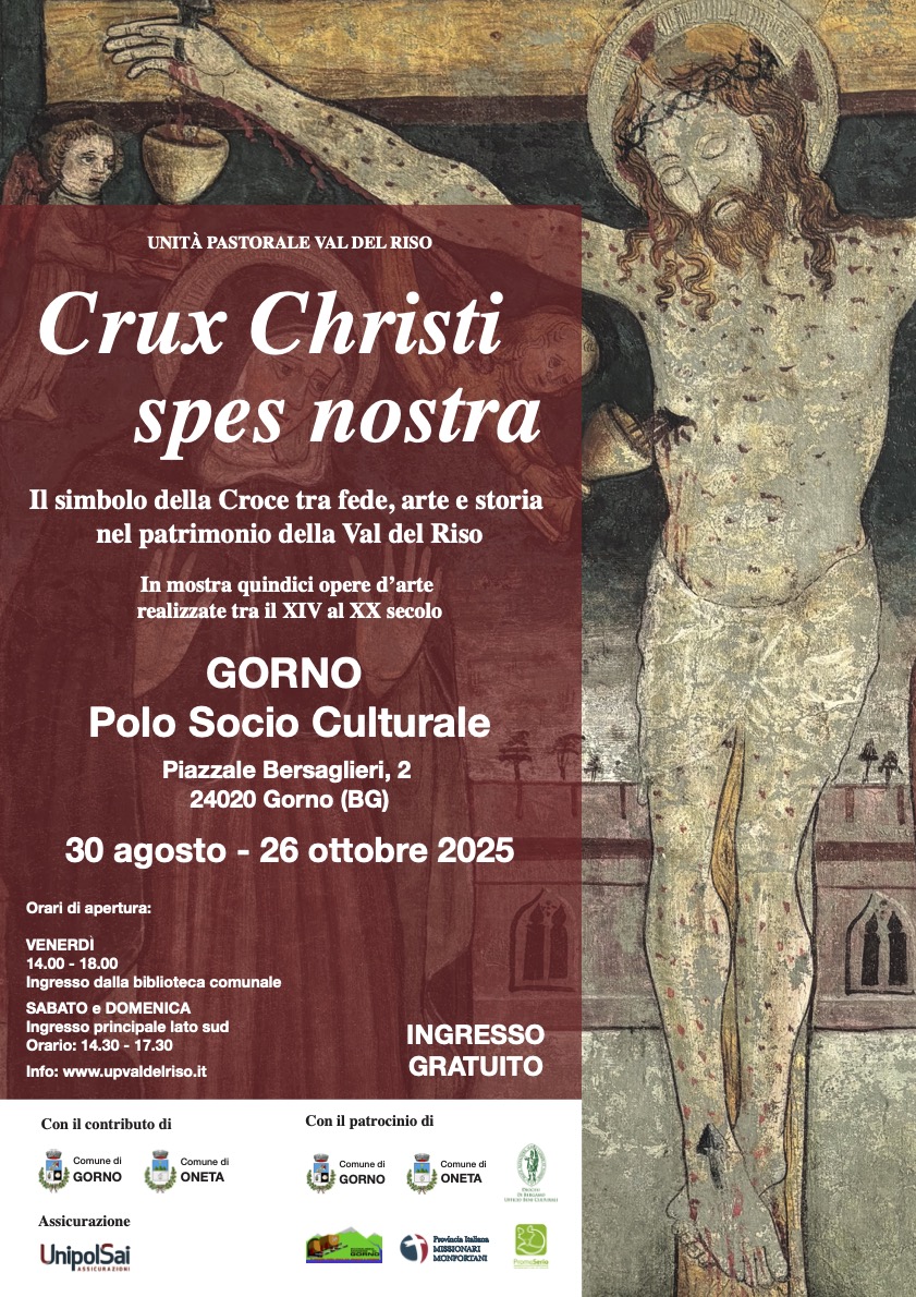 La Parrocchia S. Martino vescovo in Gorno, in collaborazione con le parrocchie della Valle del Riso (Oneta, Cantoni e Chignolo), organizza la mostra «Crux Christi Spes Nostra», allestita presso il Polo Socio Culturale del Comune di Gorno dal 30 agosto al 26 ottobre 2025.