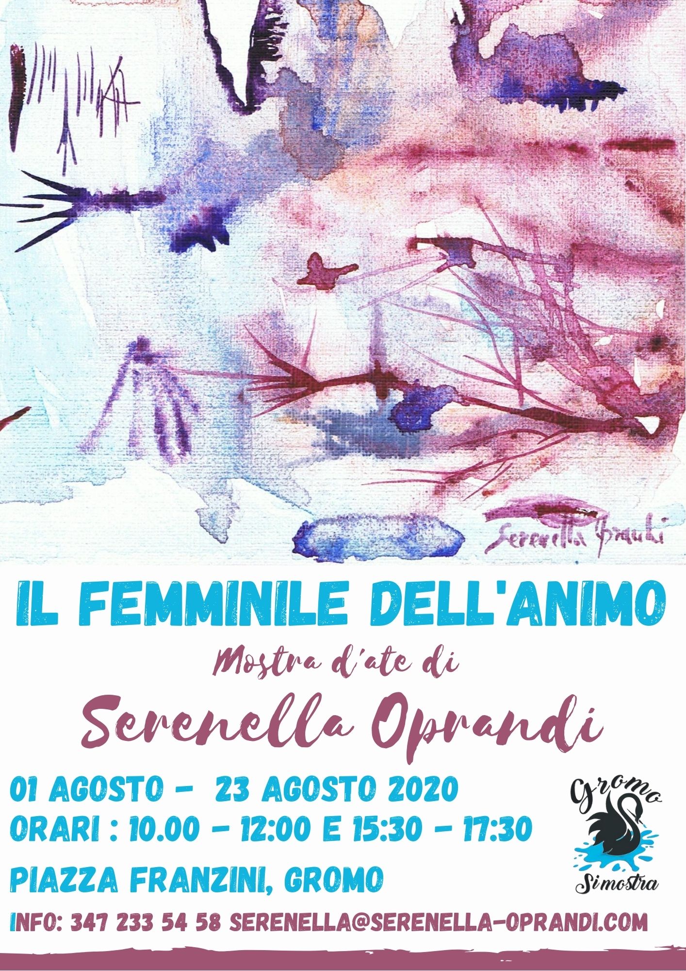 La pittrice Serenella Oprandi, presenta la mostra “Femminile nell’animo” a Gromo, negli spazi pubblici di Piazza Franzini, nell’ambito dell’iniziativa “Gromo si mostra” promossa dal Comune di Gromo.