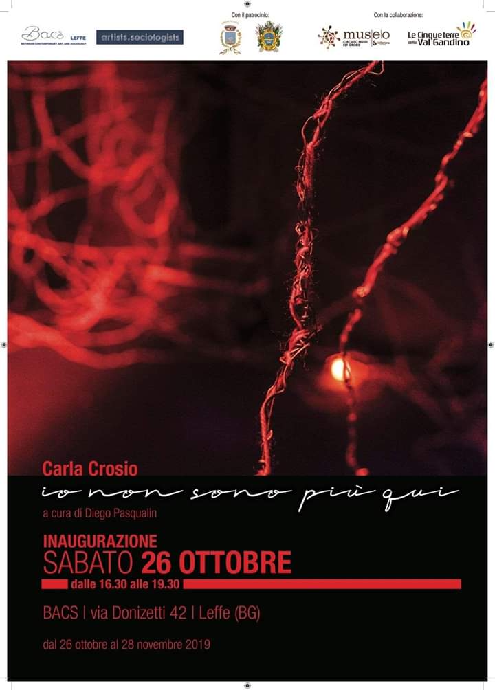 Sabato 26 ottobre al BACS di Leffe in via Donizetti 42 viene inaugurata la mostra personale di Carla Crosio dal titolo "Io non sono più qui" a cura di Diego Pasqualin.