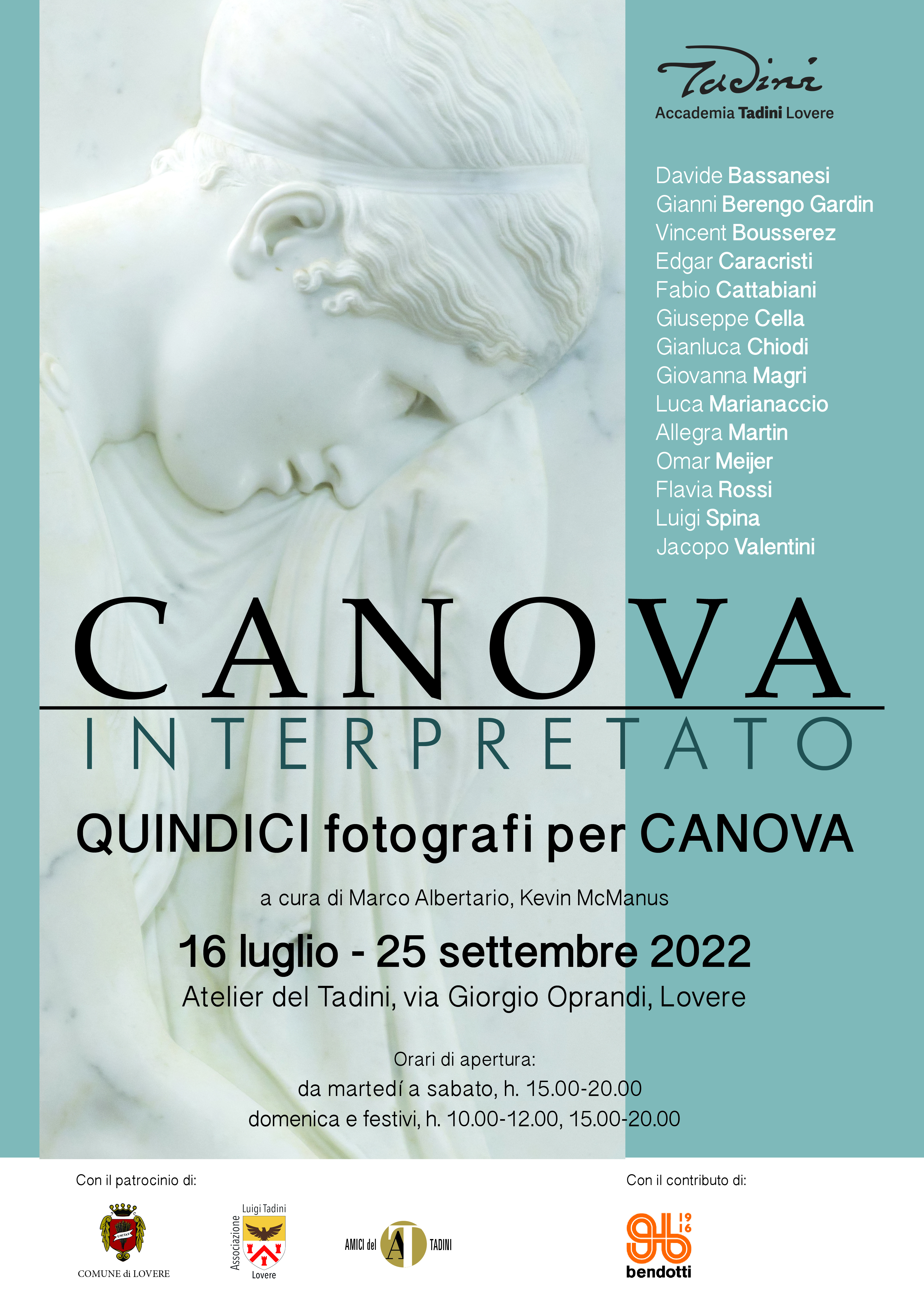 Sarà inaugurata sabato 16 luglio alle 18:30 presso l’Atelier del Tadini (via Giorgio Oprandi, Lovere) la mostra fotografica Canova interpretato. Quindici fotografi per Canova.