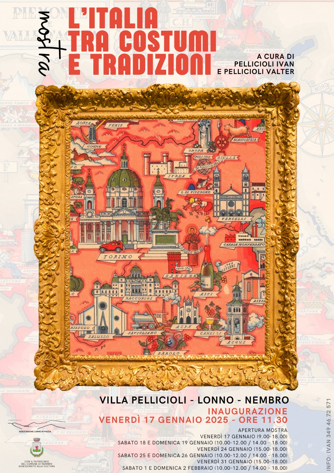La mostra “L'Italia tra costumi e tradizioni”, un affascinante viaggio alla scoperta delle radici culturali italiane attraverso cartine storiche e abiti d'epoca. L'esposizione si terrà nei suggestivi saloni polifunzionali della Villa Pellicioli a Lonno e sarà aperta al pubblico in diverse date.
