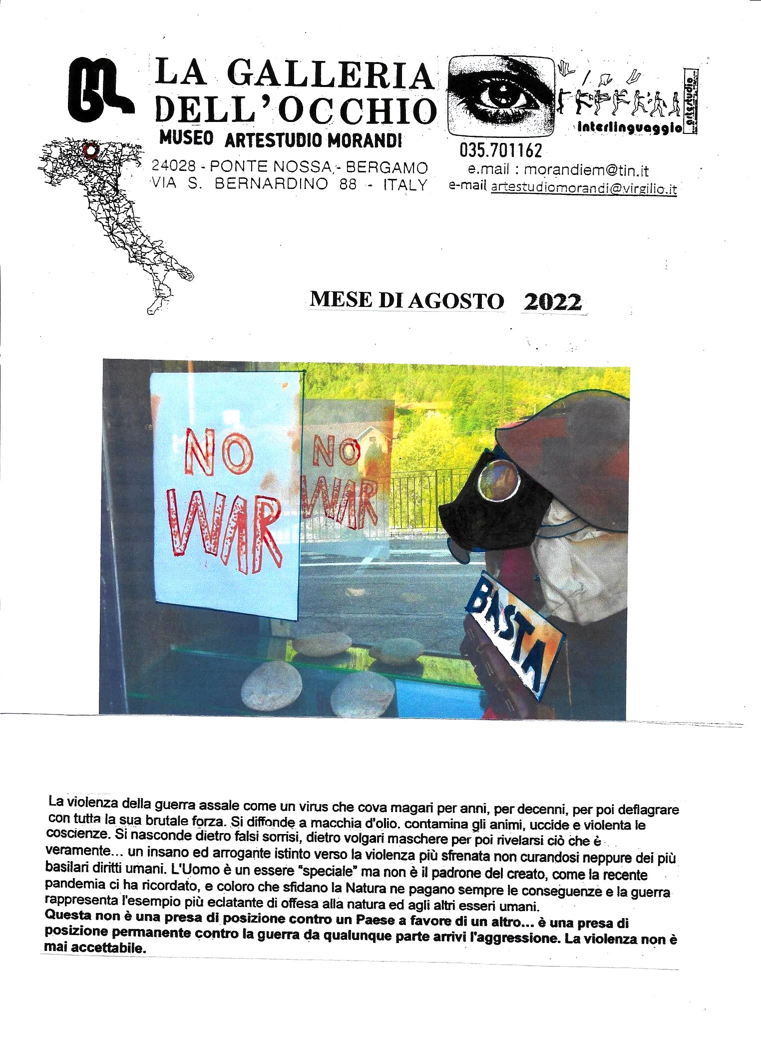 "La violenza della guerra assale come un virus che cova magari per anni, per decenni, per poi deflagrare con tutta la sua brutale forza. Si diffonde a macchia d'olio, contamina gli animi, uccide e violenta le coscienze. Si nasconde dietro falsi sorrisi, dietro volgari maschere per poi rivelarsi ciò che è veramente... un insano ed arrogante istinto verso la violenza più sfrenata non curandosi neppure dei più basilari diritti umani. L'uomo è un essere "speciale" ma non è il padrone del creato, come la recente pandemia ci ha ricordato, e coloro che sfidano la Natura ne pagano sempre le conseguenze e la guerra rappresenta l'esempio più eclatante di offesa alla natura ed agli altri esseri umani. Questa non è una presa di posizione contro un Paese a favore di un altro... è una presa di posizione permanente contro la guerra da qualunque parte arrivi l'aggressione. La violenza non è mai accettabile."