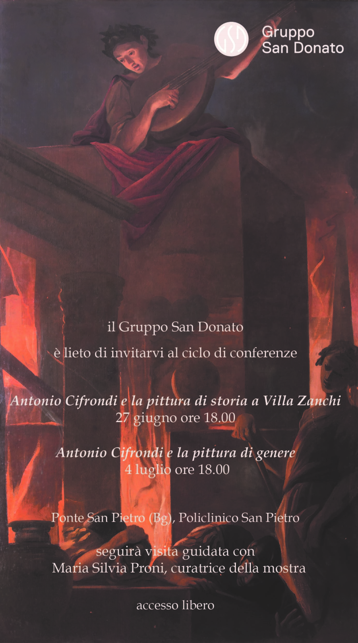 Il ciclo di conferenze, a cura di Maria Silvia Proni e Rosanna Ferrari, vuole sottolineare lโimpegno della mostra Antonio Cifrondi a Villa Zanchi e a Ponte San Pietro. Dove la medicina cura il corpo, lโarte cura lโanimaโ, ospitata fino al 30 luglio nei locali appena rinnovati del Policlinico San Pietro e nata dal desiderio di porre lโarte al servizio di tutti coloro che possono trarne beneficio, rendendo gli asettici ambienti ospedalieri luoghi emotivamente positivi e utili al benessere dei pazienti. Il rapporto arte-medicina diventa centrale nella convinzione che, se la medicina cura il corpo, lโarte puรฒ curare lโanima, attraverso la bellezza.