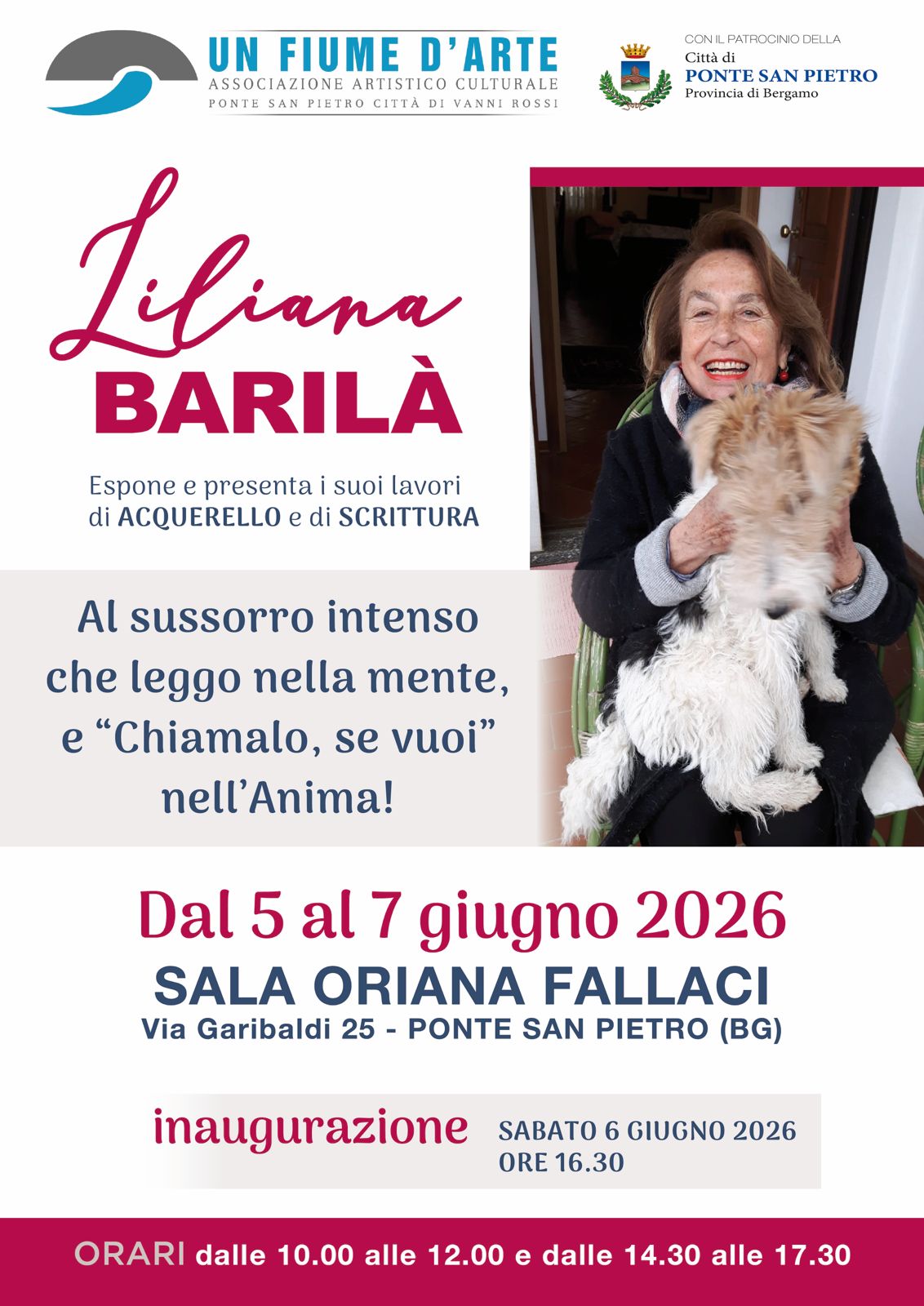 Mostra d'arte moderna: Liliana Barilà presenta i suoi lavori di acquerello e scrittura, dal titolo «Al sussurro intenso che leggo nella mente», e «Chiamalo, se vuoi nell'anima» !