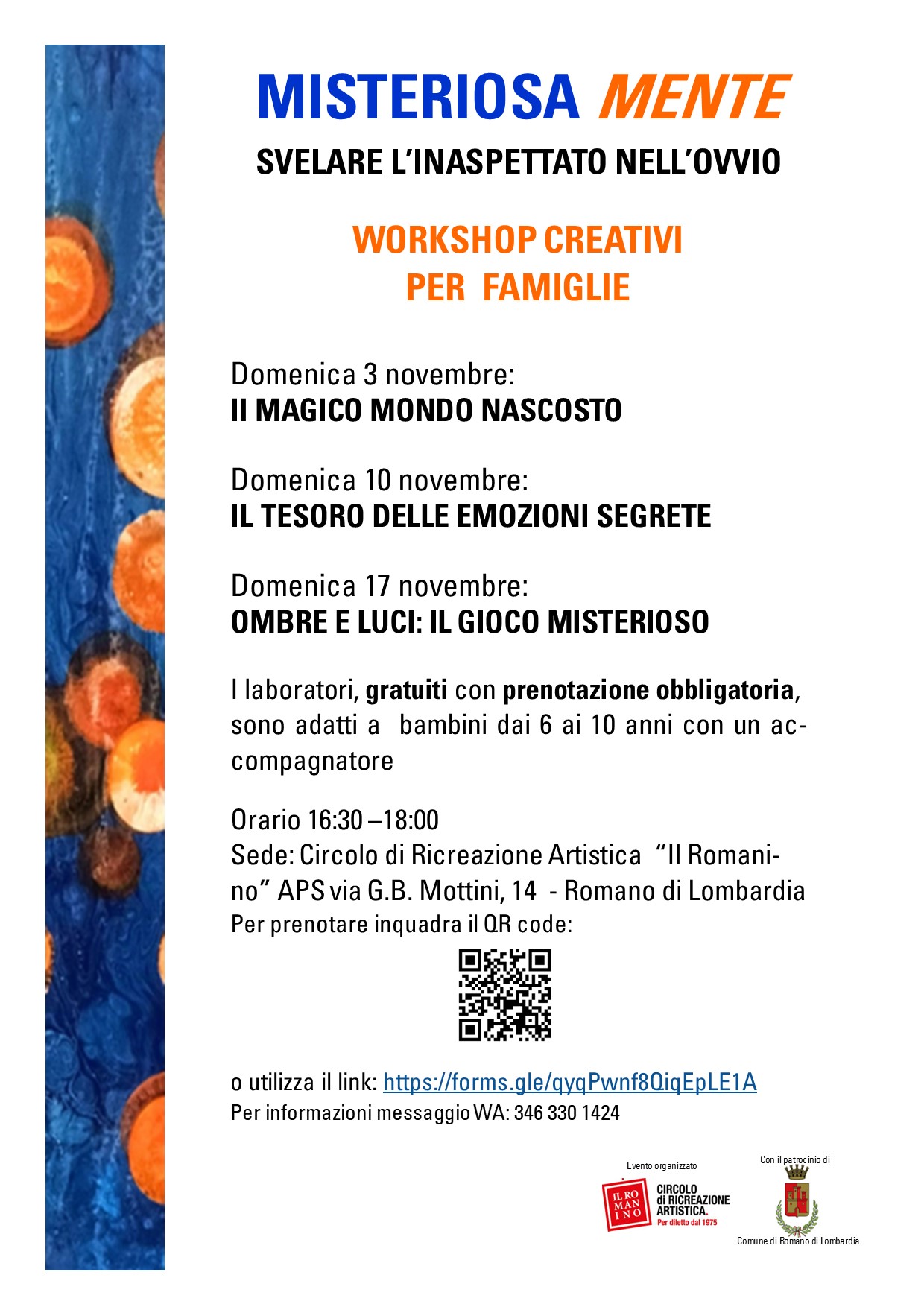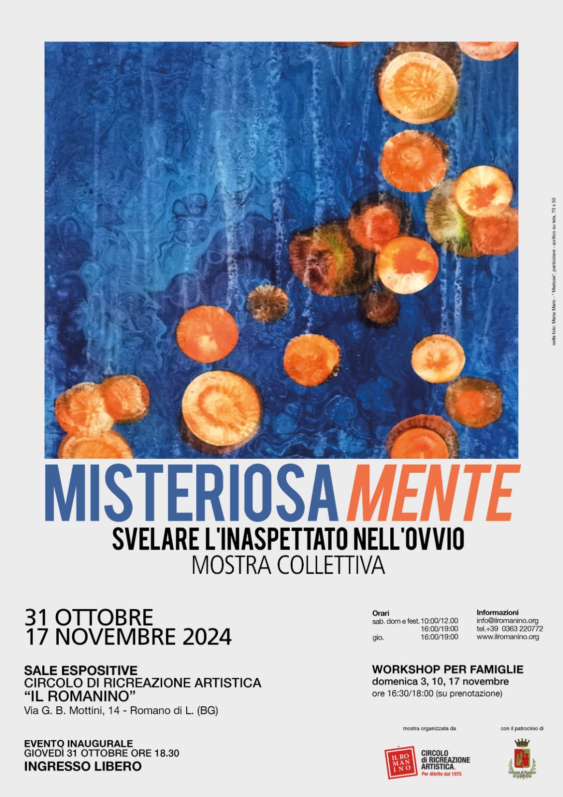 Il Circolo di Ricreazione Artistica "Il Romanino" APS presenta la mostra collettiva degli artisti del Circolo "MisteriosaMente - Svelare l'inaspettato nell'ovvio", in programma dal 31 ottobre al 17 novembre presso la sede del Circolo di Ricreazione artistica “Il Romanino”.