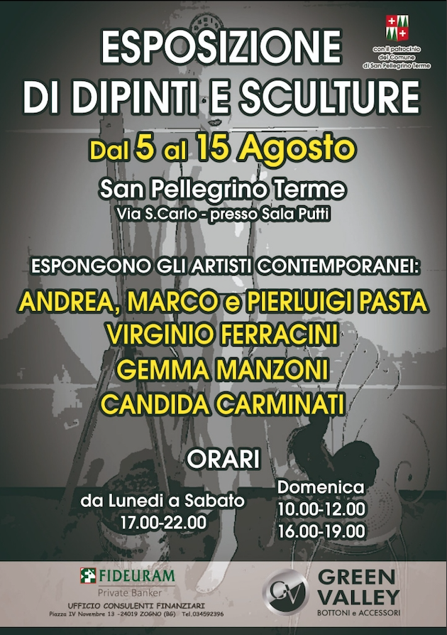 A San Pellegrino verrร allestita una mostra collettiva dโarte contemporanea, che si terrร nella sala Putti di Villa Speranza dal 5 al 15 agosto.