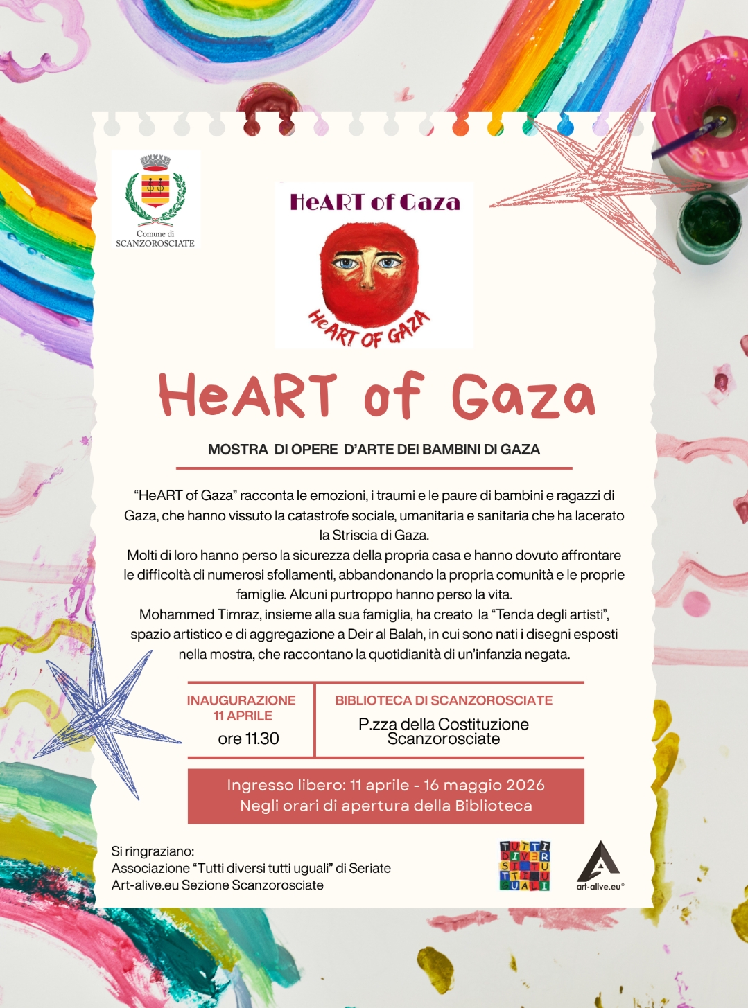 Il progetto ยซHeART of Gazaยป nasce per dar voce a chi ha vissuto in prima persona una catastrofe sociale, umanitaria e sanitaria senza precedenti. Attraverso il linguaggio universale dell'arte, l'esposizione racconta i traumi, le paure ma anche la resilienza di un'infanzia segnata dalla perdita della casa, della comunitร e, in troppi casi, della vita stessa.