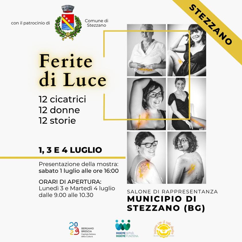Il Comune di Stezzano ospiterà l’1, il 3 e il 4 luglio "Ferite di Luce", una mostra fotografica promossa dall’associazione «Insieme con il sole dentro – Melamici contro il melanoma» in collaborazione con «Insieme si può. Insieme funziona».