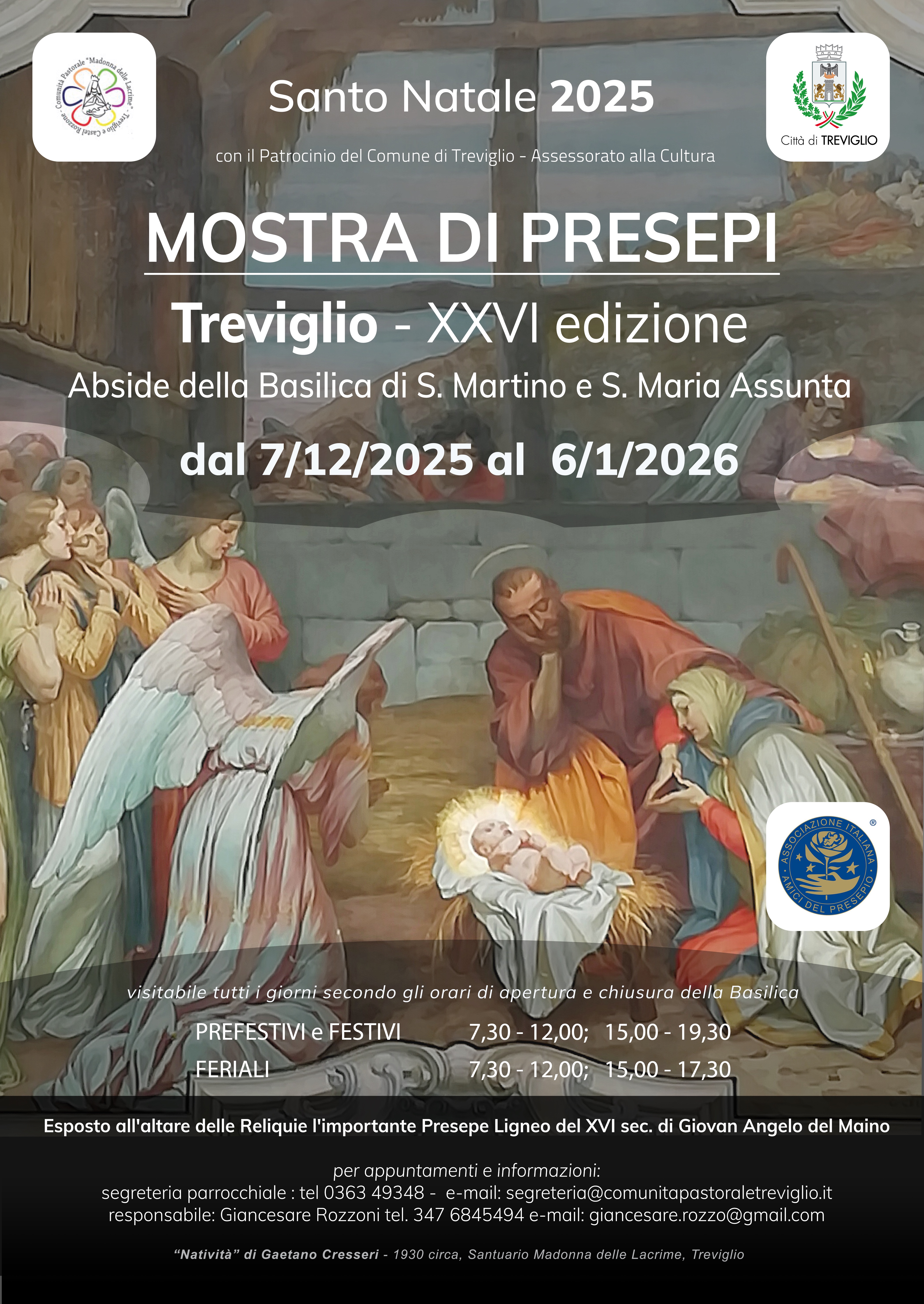 Torna a Treviglio uno degli appuntamenti più amati del periodo natalizio: la Mostra di Presepi, giunta alla sua XXVI edizione. Un percorso affascinante che accompagna i visitatori alla scoperta di opere d’arte, tradizione e devozione.
