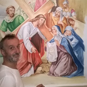 Quattro madonnari bergamaschi portano in alta Val Seriana la loro arte.