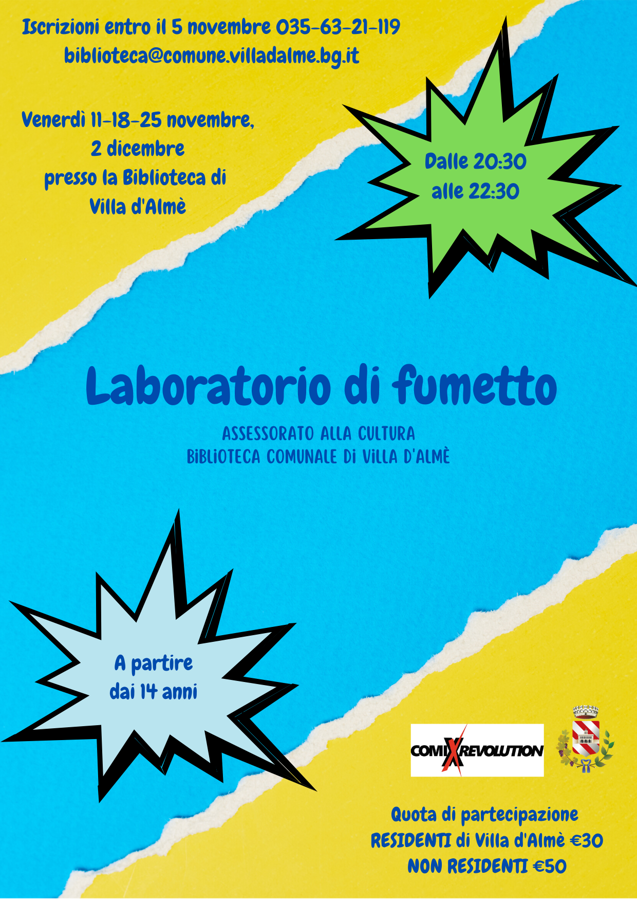 Un corso di fumetto per chi ama disegnare e sperimentarsi nel fumetto, che si tiene ogni venerdì dall'11 novembre al 2 dicembre.