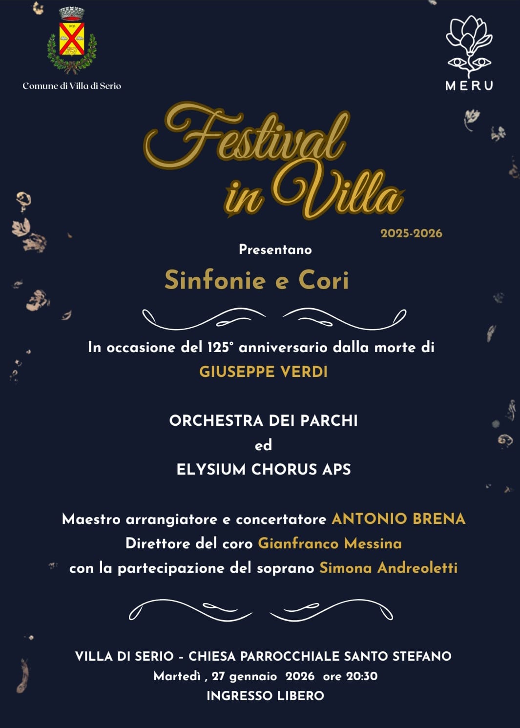 Martedì 27 gennaio ore 20:30 celebriamo i 125 anni dalla morte di Giuseppe Verdi con un concerto di Sinfonie e Cori celebri tratti dalle sue Opere Immortali.Chiesa Parrocchiale Santo Stefano a Villa di Serio. Ingresso libero senza prenotazione.