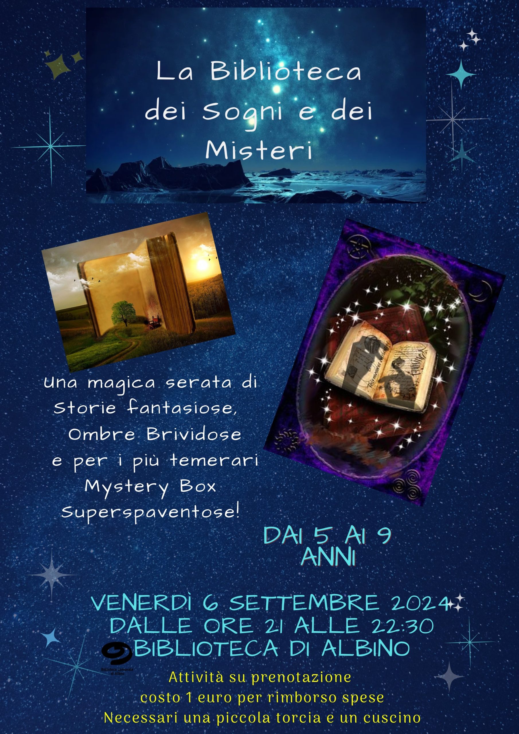 In serata è in programma dalle ore 21 presso la biblioteca di Albino una magica serata di storie fantasiose, ombre brividose e per i più temerari misteri box super spaventose!