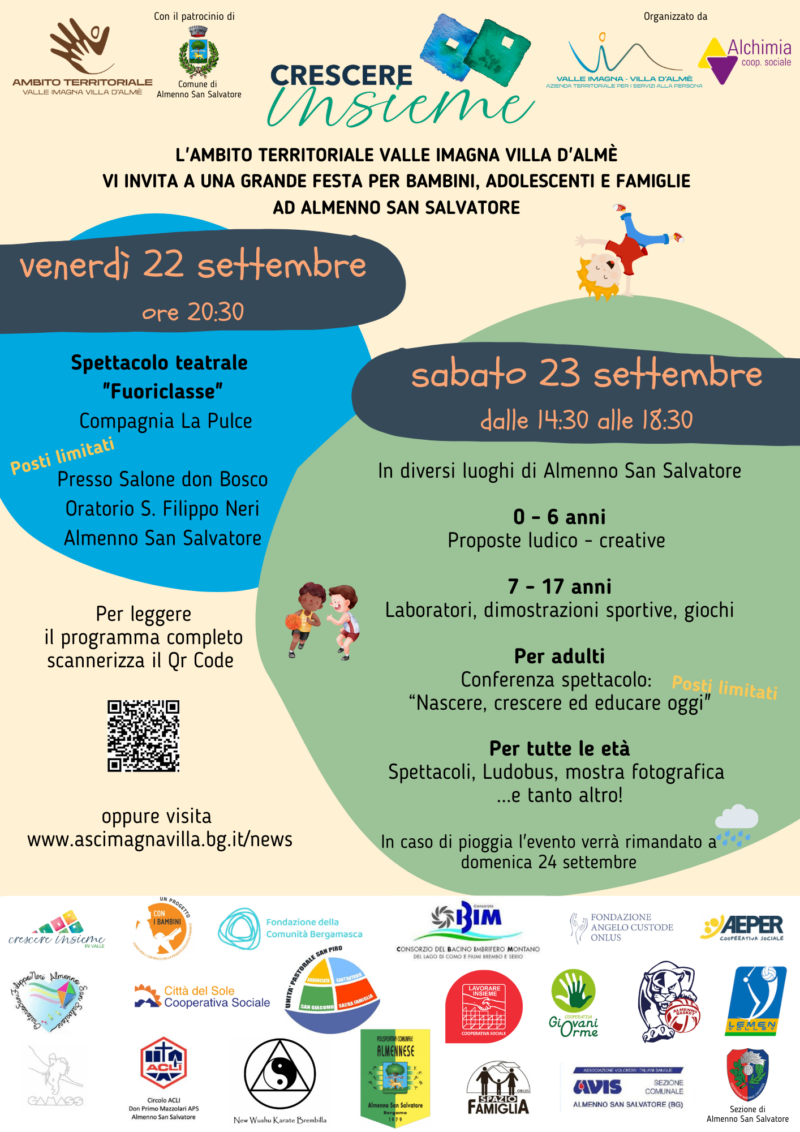 Crescere Insieme è un evento dell’Ambito Valle Imagna – Villa d’Almé, organizzato dall’Azienda territoriale per i servizi alla persona in collaborazione con la cooperativa sociale Alchimia.