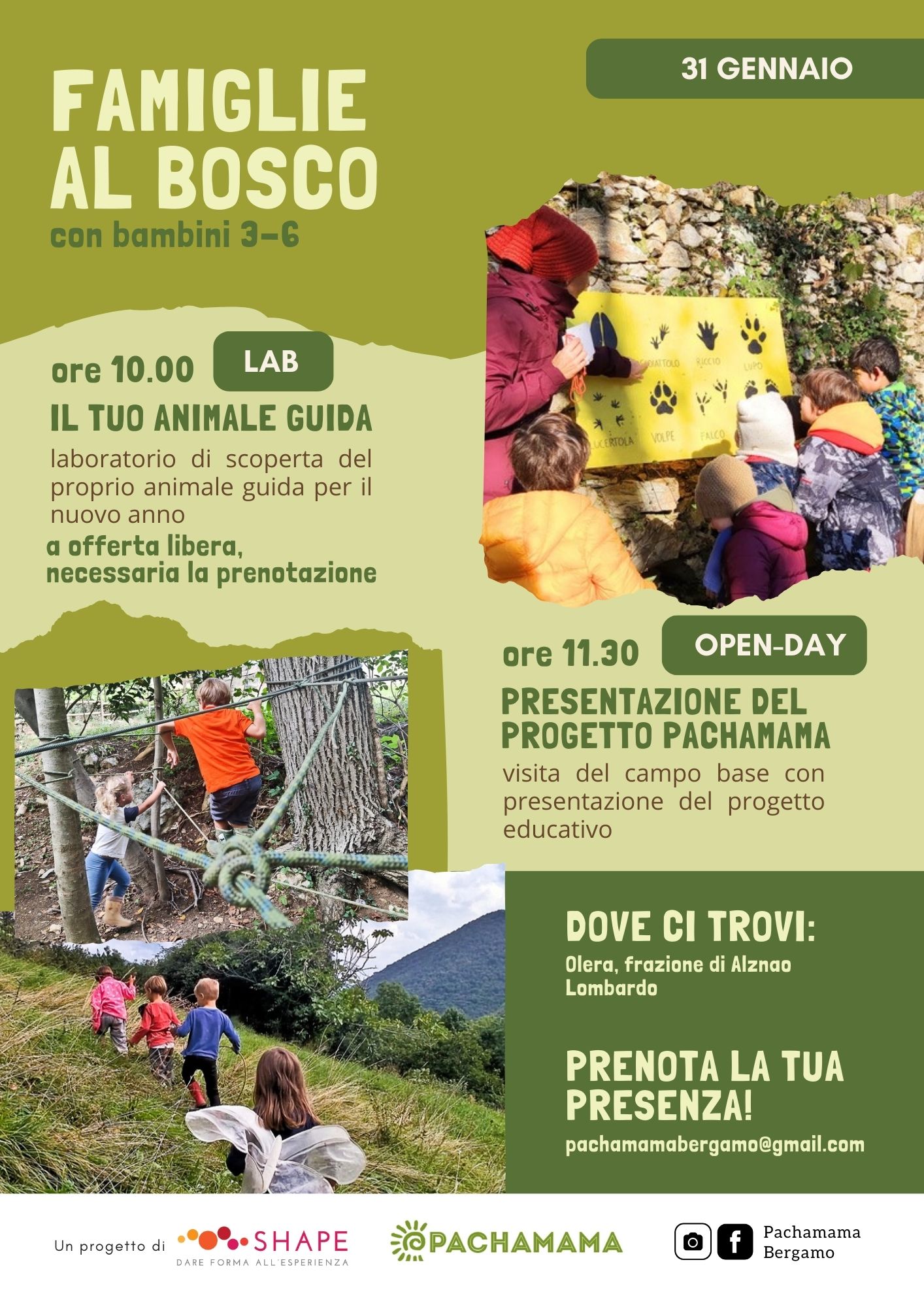 L'Associazione Shape organizza un laboratorio alla scoperta del proprio animale guida e presenta il progetto educativo Pachamama, dedicato ai bambini da 3 a 6 anni.