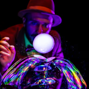 Uno spettacolo per sognare, nato attorno all’oggetto più magico di sempre: la bolla di sapone. Tra rime, poesia e sorprendenti tecniche di bolle, il gioco diventa teatro. Un’affabulazione leggera e divertente che unisce parola e meraviglia, dimostrando come fantasia e contenuto possano volare insieme e incantare grandi e piccoli.
