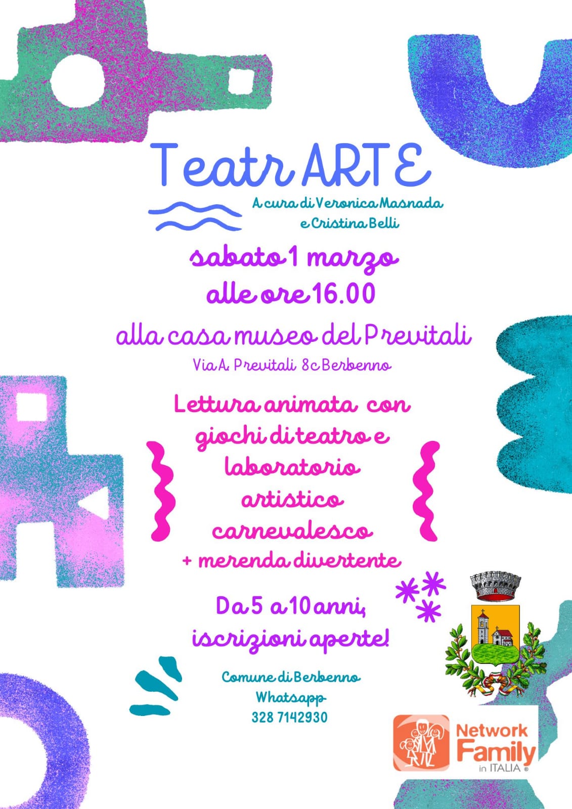 Alla casa del Previtali lettura animata con giochi di teatro e laboratorio artistico carnevalesco per bambini! A seguire una merenda gustosa e divertente insieme.