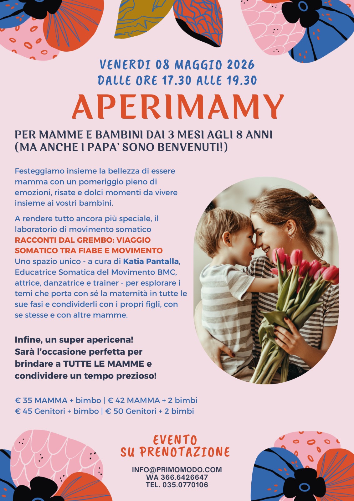 Festeggiate la Festa della Mamma al Centro Primomodo. Un emozionante laboratorio per bimbi e genitori, arricchito da un gustoso aperi-cena e una sorpresa finale.
