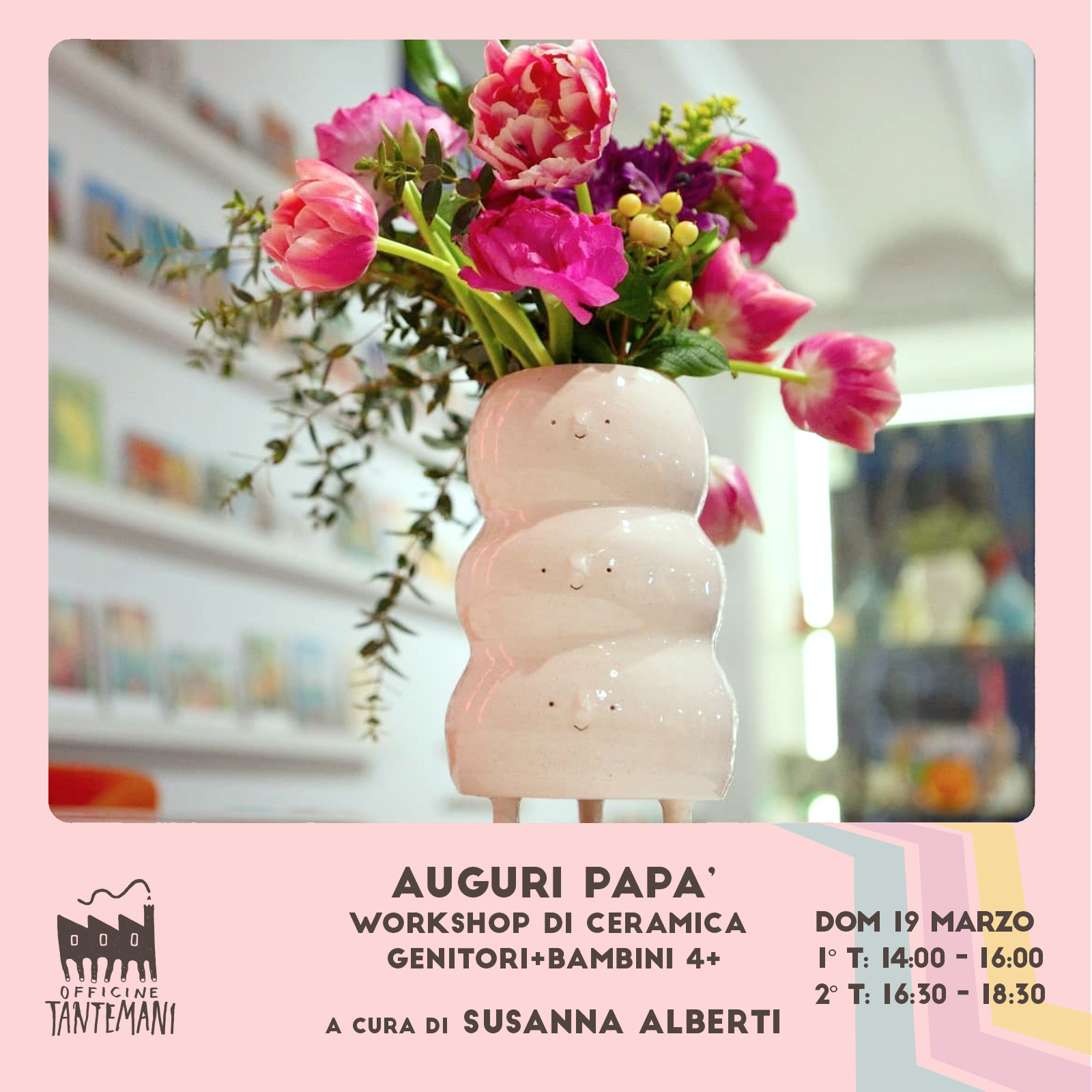 Le creazioni saranno cotte e smaltate dall’insegnante e riconsegnate ai partecipanti in una decina di giorni.