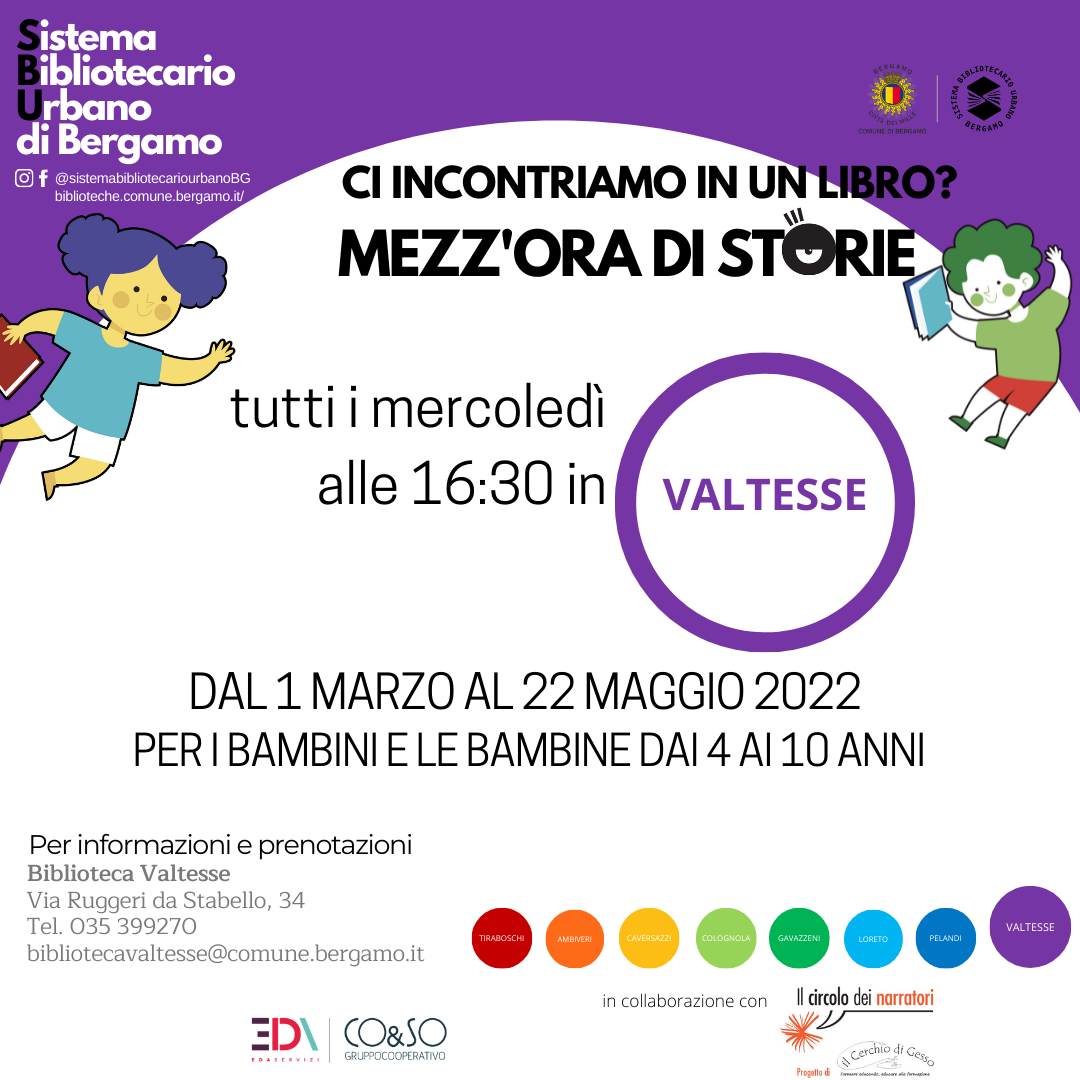 La Biblioteca di Valtesse è lieta di ospitare i più piccoli per dei momenti di storie e lettura in biblioteca.