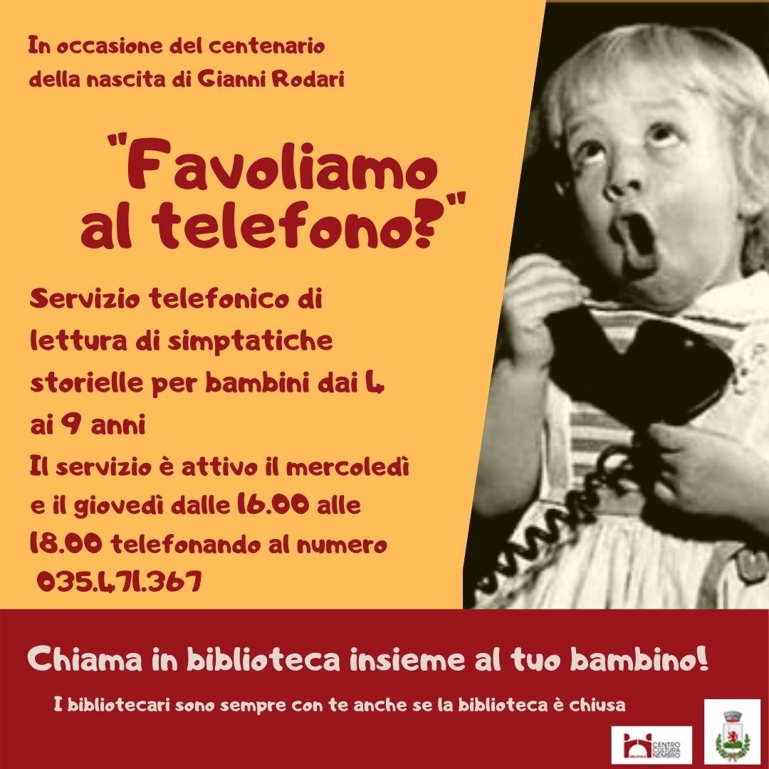 In occasione del centenario della nascita di Gianni Rodari, la biblioteca di Nembro attiva un nuovo servizio telefonico di lettura di simpatiche storielle, per bambini dai 4 ai 9 anni.