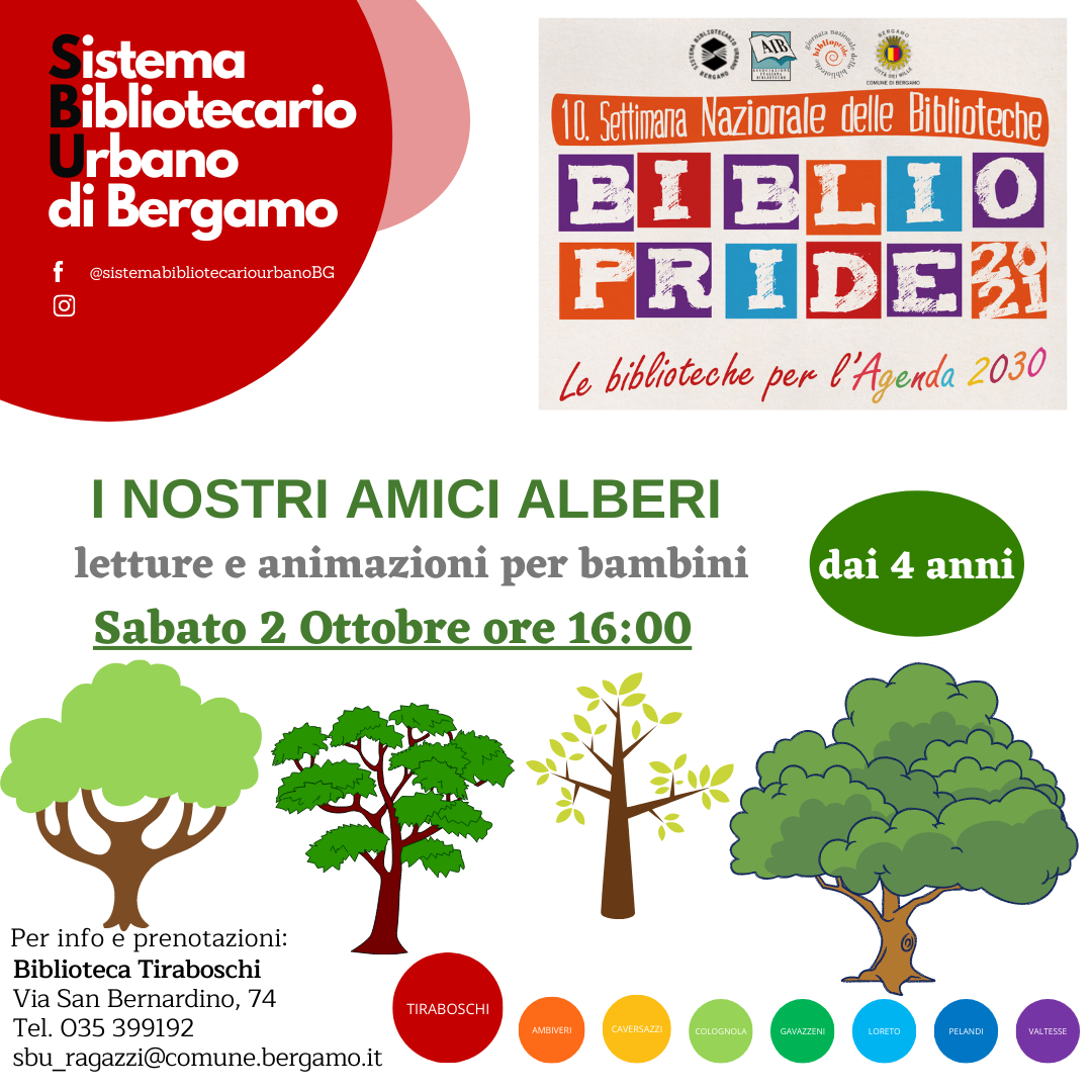 In occasione del BiblioPride 2021 dedicato alle azioni delle biblioteche a sostegno dell'Agenda ONU 2030 per lo sviluppo sostenibile, la biblioteca Tiraboschi propone letture su alberi e natura per bambine e bambini dai 4 anni.