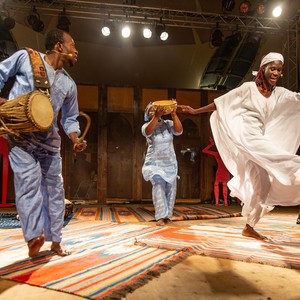 accompagnamento musicale a cura di Mamadeni Coulibaly (voce, bara e calebasse) e Ousmane Coulibaly  (voce, kora, gangan)  in collaborazione con Kady Coulibay