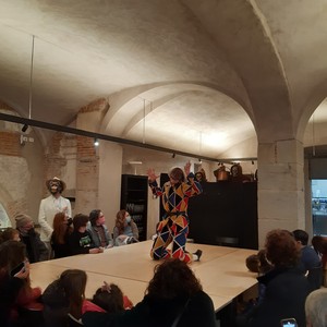 Un Arlecchino-Cicerone, lavoratore napoletano emigrato al Nord, guida adulti, ragazzi e bambini alla scoperta dei luoghi più o meno conosciuti dei due beni storici, invitando ad osservarne le peculiarità, a coglierne le differenze, a scoprirne i particolari più nascosti rivelando qui e là anche qualche piccolo segreto. La visita teatrale itinerante è un’opera dalla struttura aperta, costituita da un alternarsi di momenti spettacolari costruiti di volta in volta a seconda dei luoghi interessati. Ad animarla saranno gli attori del TTB, sebbene il ruolo di veri protagonisti spetterà agli ambienti interni ed esterni dei due Monasteri.