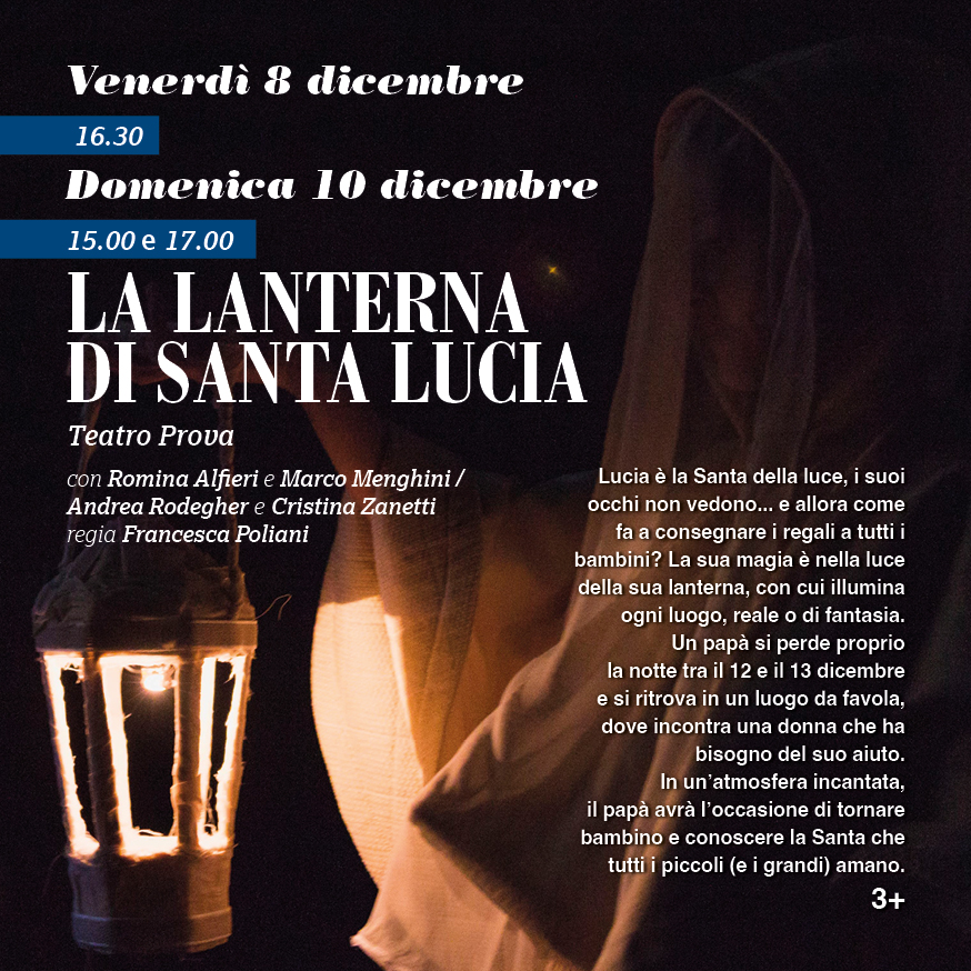 Continua la rassegna per famiglie Giocarteatro di Teatro Prova: sul palco Romina Alfieri e Marco Menghini, Andrea Rodegher e Cristina Zanetti, avendo l’occasione di tornare bambini per conoscere la Santa che tutti i piccoli (e i grandi) amano.