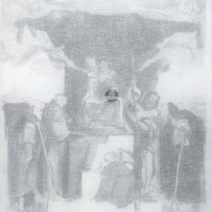 L’esposizione mette in relazione due esperienze artistiche lontane nel tempo ma unite da una profonda tensione spirituale. L’opera contemporanea nasce da un’attenta osservazione della pala lottesca: Piccoli individua nella mano della Vergine — posta al centro dell’impianto compositivo e rivolta verso il basso in gesto di intercessione — il fulcro teologico e strutturale dell’intera scena. Da questa intuizione prende forma una nuova pala, più raccolta nelle dimensioni ma intensa nella resa luminosa e materica, realizzata attraverso stratificazioni di pigmento, garza, cera e carbone.