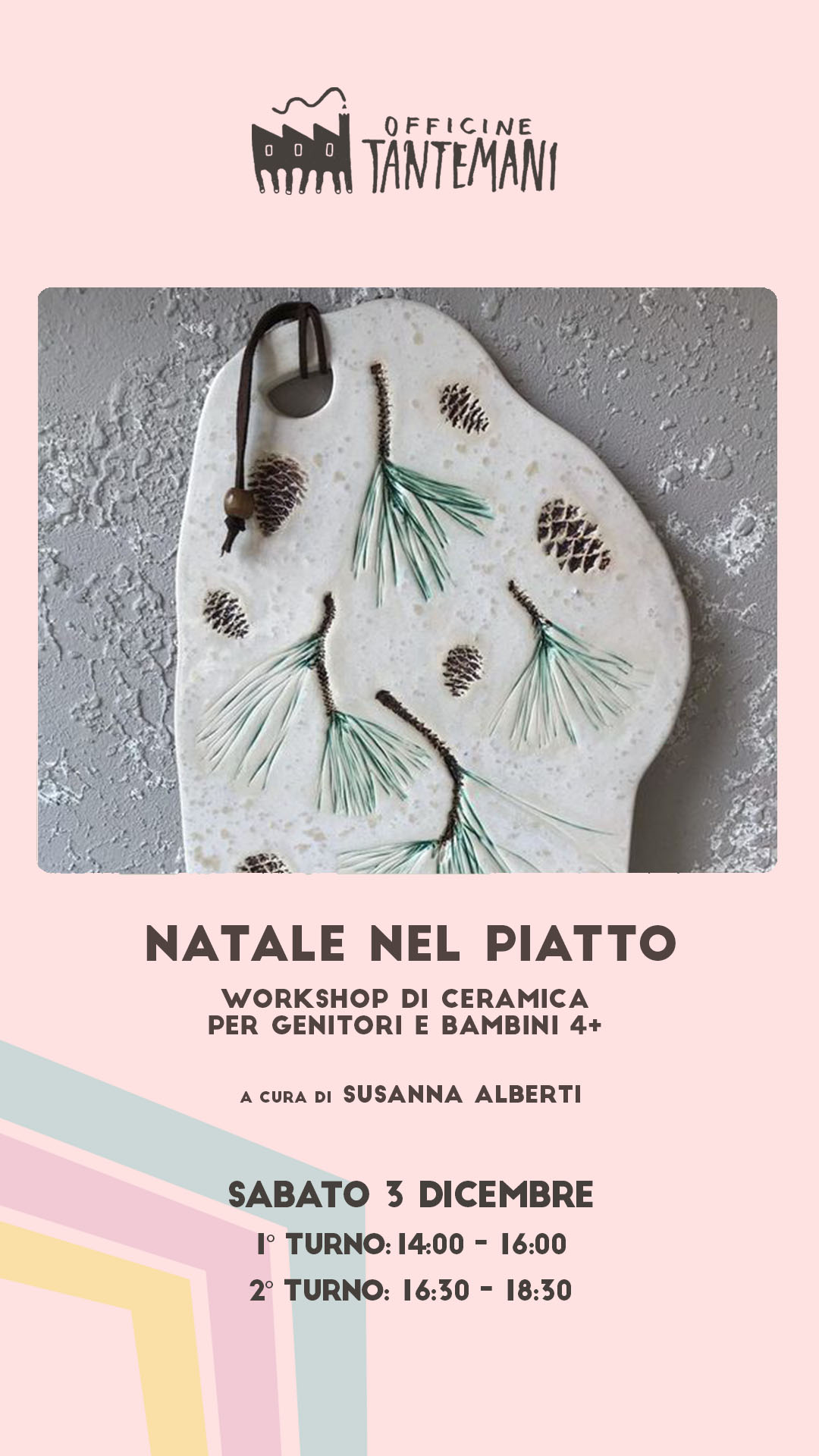 Le creazioni saranno cotte e smaltate dall’insegnante e riconsegnate ai partecipanti in una decina di giorni.