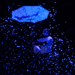 Buio pesto... i due non possono vedersi, non si riconoscono e cominciano a parlare. Scoprono così di avere un sacco di cose in comune: la paura dei tuoni, la fame, il freddo, la mamma, la cacca, le risate... e soprattutto scoprono di essere contenti di aver trovato nell’altro un amico...