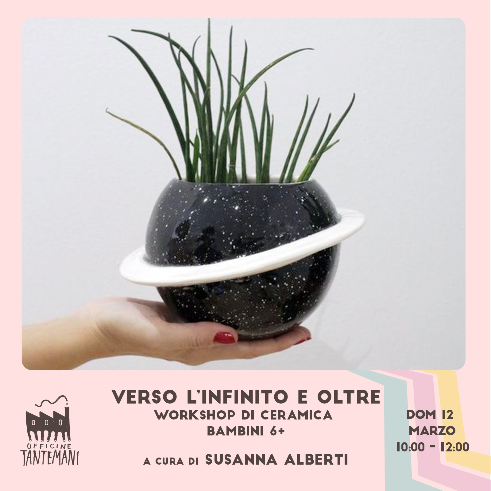 Workshop per bimbi dai 6 anni. Durante il laboratorio i bambini verranno guidati nella creazione di un vaso pensile a forma di oggetto spaziale: pianeti, asteroidi, razzi, astronavi aliene.