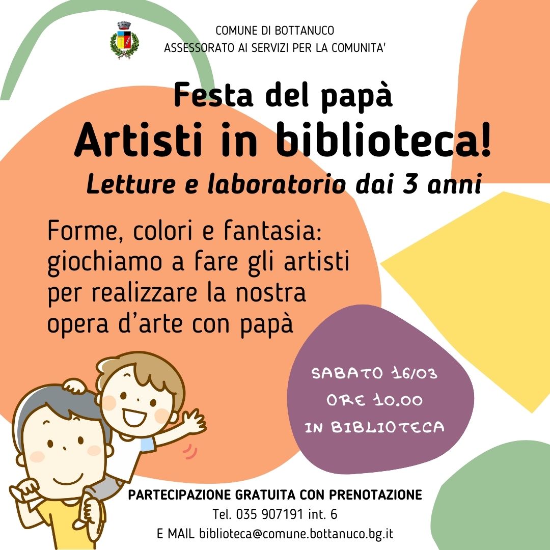 In occasione della Festa del Papà, letture e un laboratorio per i bambini a partire dai 3 anni. Forme, colori e fantasia per giochiamo a fare gli artisti e realizzare la propria opera d'arte con papà.