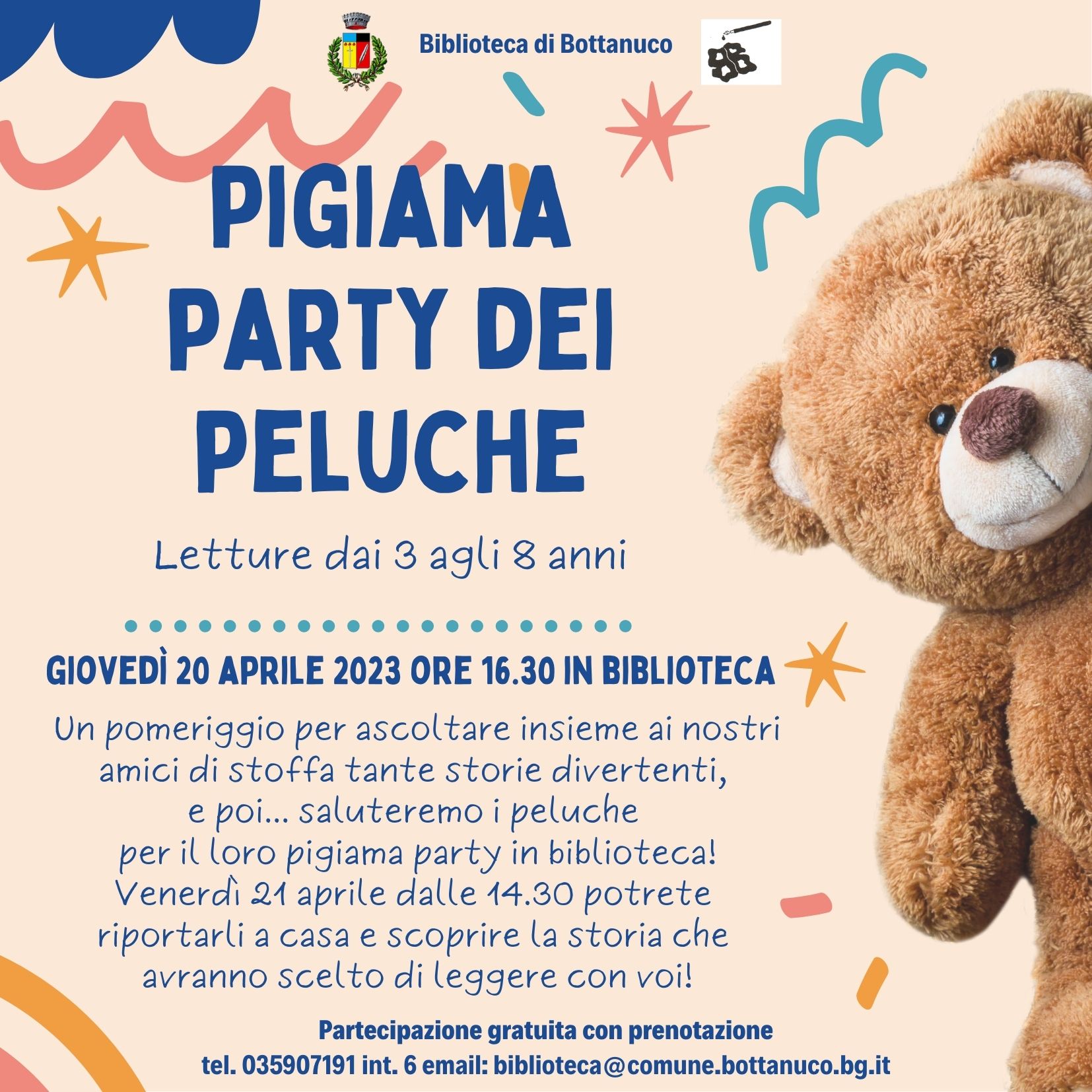 Un pomeriggio per ascoltare insieme ai vostri amici di stoffa tante storie divertenti, e poi... saluterete i peluche per il loro pigiama party in biblioteca.