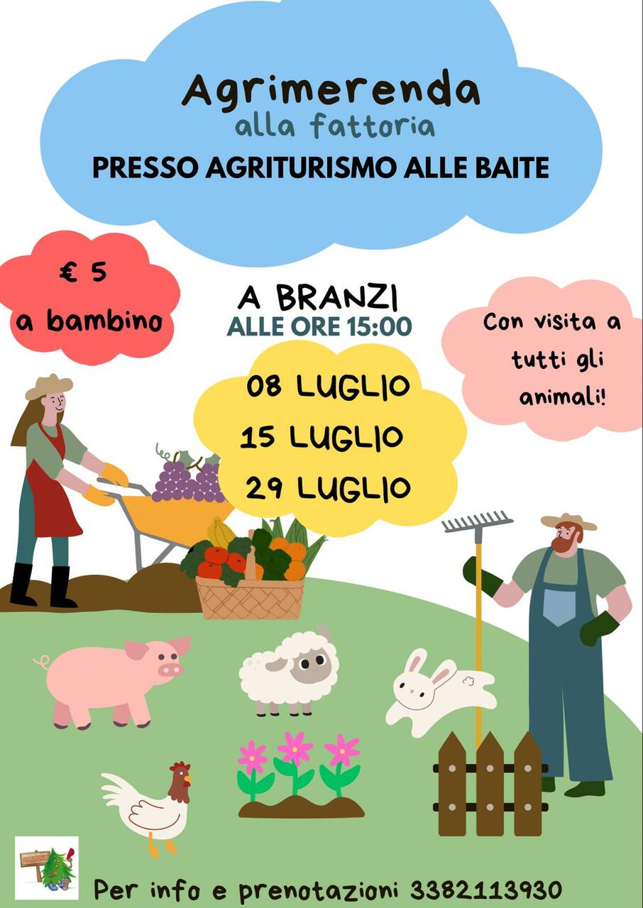 A Branzi il 15 luglio è in programma "Agrimerenda alla fattoria!", un pomeriggio di divertimento e scoperta degli animali.