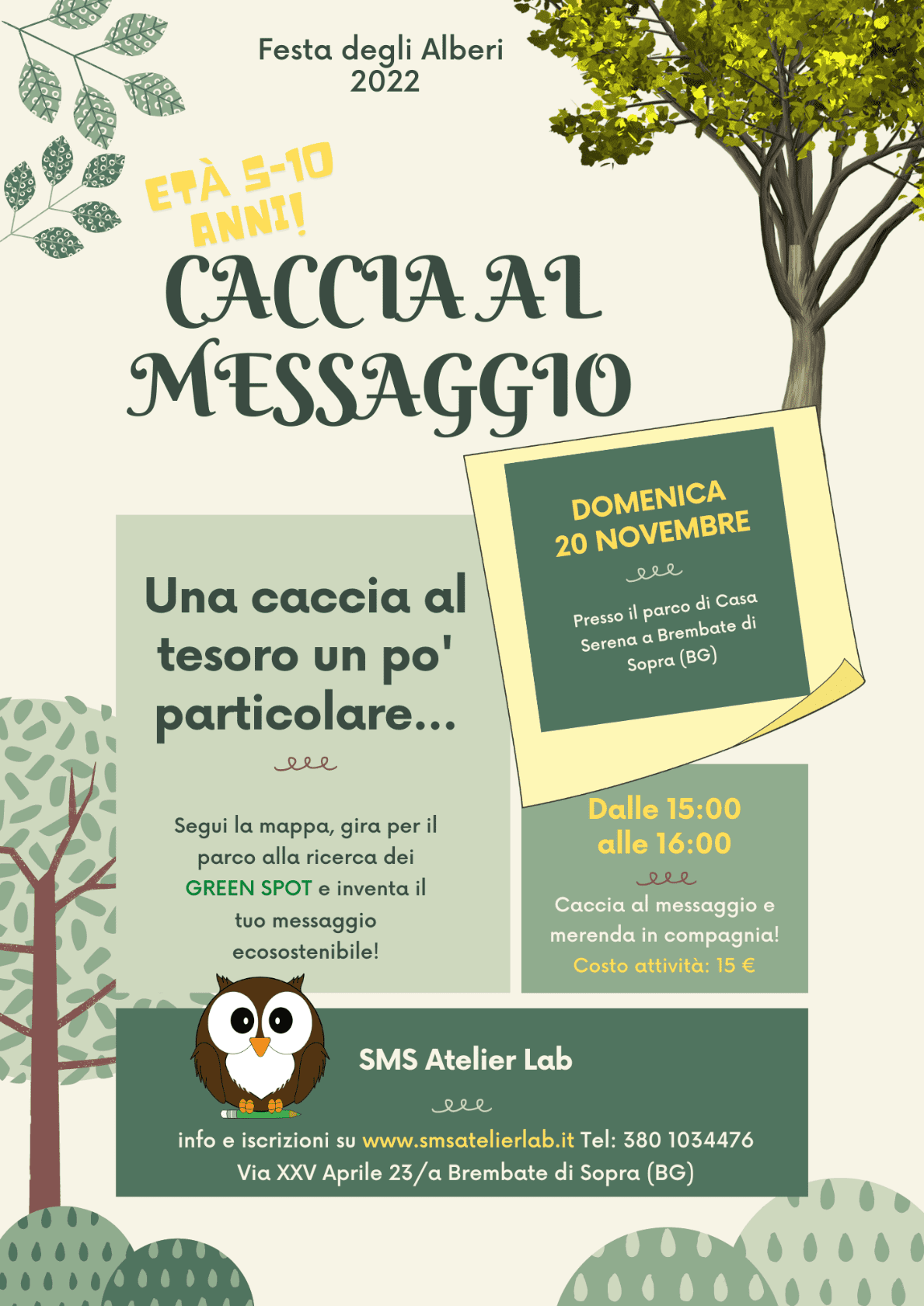 SMS Atelier Lab organizza una caccia al tesoro davvero speciale. Segui la mappa, orientati tra gli alberi del parco e trova tutti i green spot, inventa il tuo messaggio ecosostenibile e fai merenda con noi!